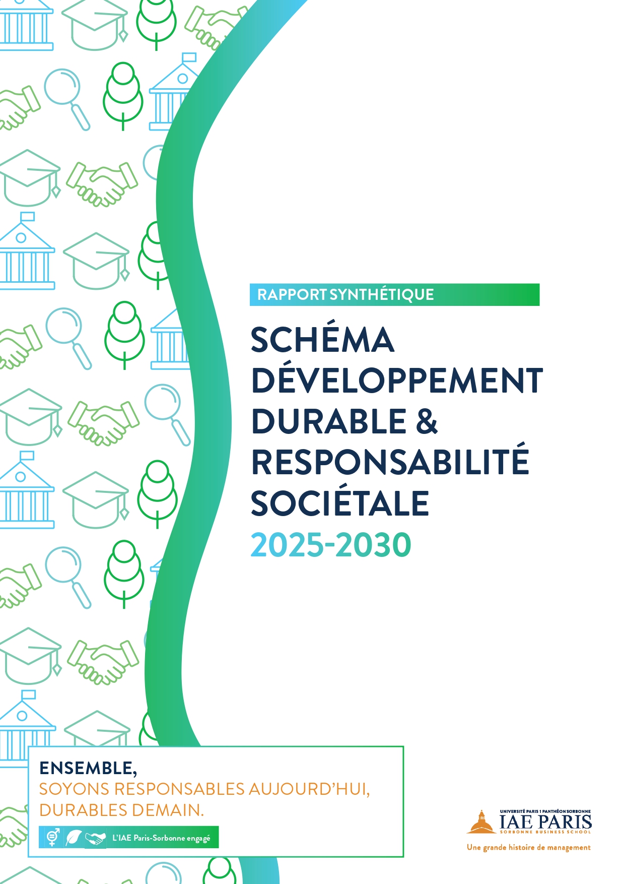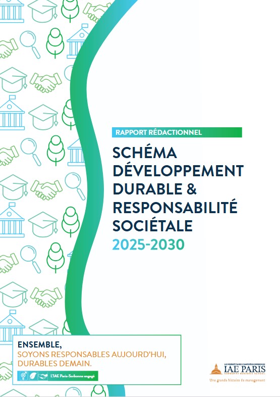 L'IAE Paris-Sorbonne s'est doté à l'été 2025 de son premier Schéma Directeur Développement Durable et Responsabilité Sociétale (DD&RS) 2025-2030. Il définit les grandes orientations de notre démarche de développement durable et de responsabilité sociétale pour les années à venir, avec un déploiement progressif entre 2025 et 2030 selon un calendrier et un accompagnement adaptés.